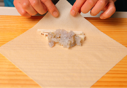 むきえびは茹でていないものを選びましょう。春巻きには、生のむきえびが向いています。