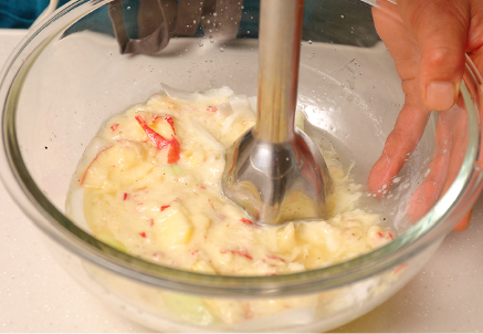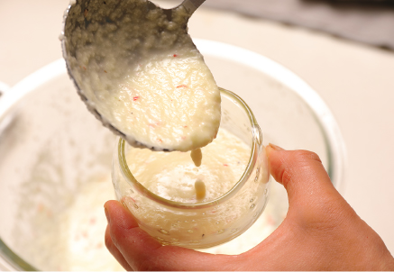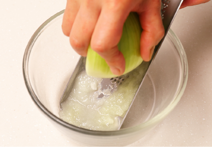 全て一気にブレンダーにかけることで分離せずに、まんべんなく混ざります。卸し金でも代用できます。