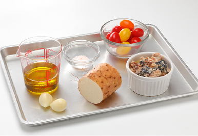 火をかける前に材料を全て入れることでオイルの味わいが深くなります。
